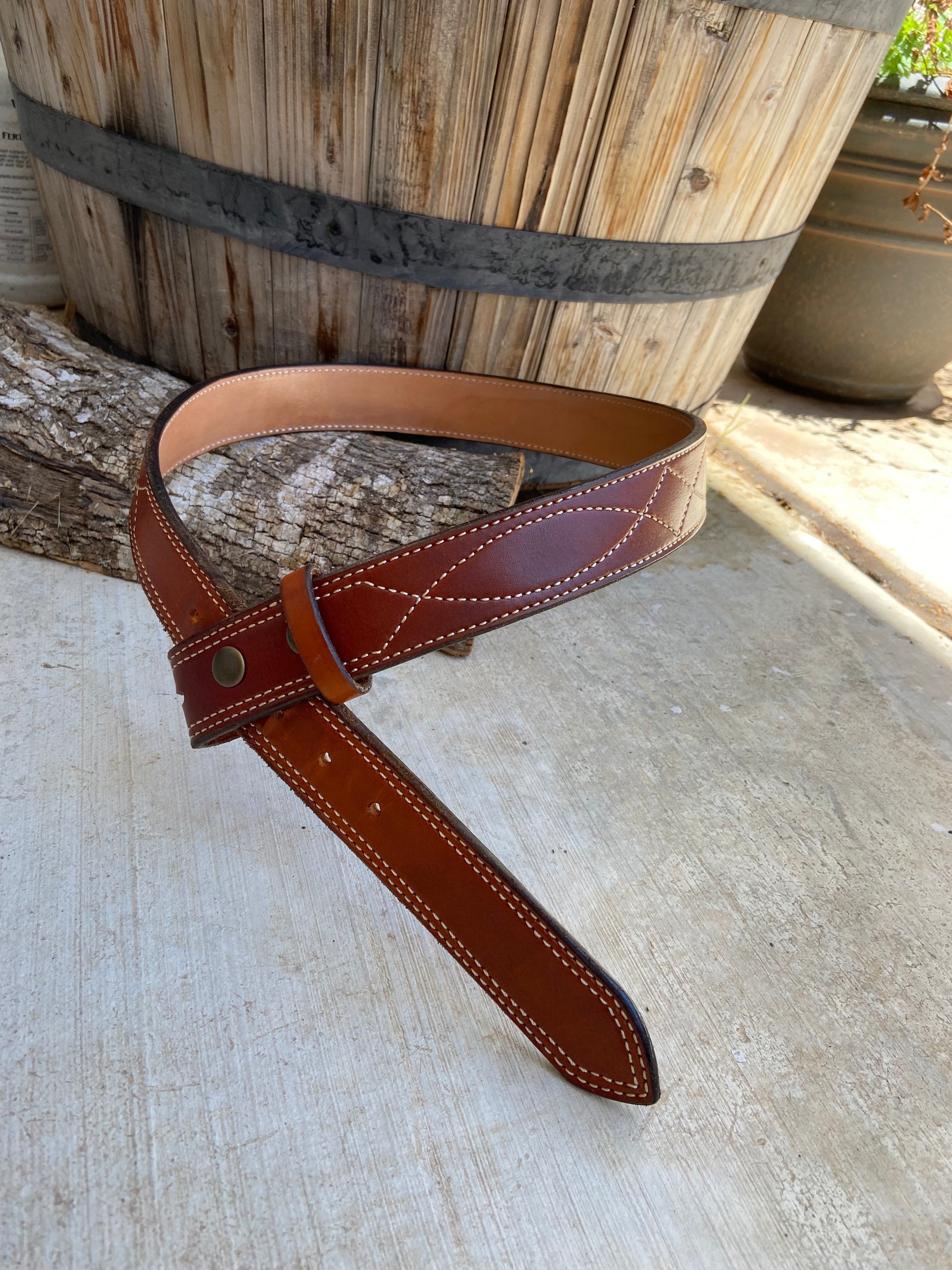 Not feelin' the flashy fully tooled style? Grab your classy yet rugged Gunslinger Belt, durably assembled with our heavy Hermann Oak leather, and stitched with the classic western design. Whether you're headed out for a day of work on the ranch or slippin' your boots on for church Sunday mornin', this belt will last through the years of use and remain strong!